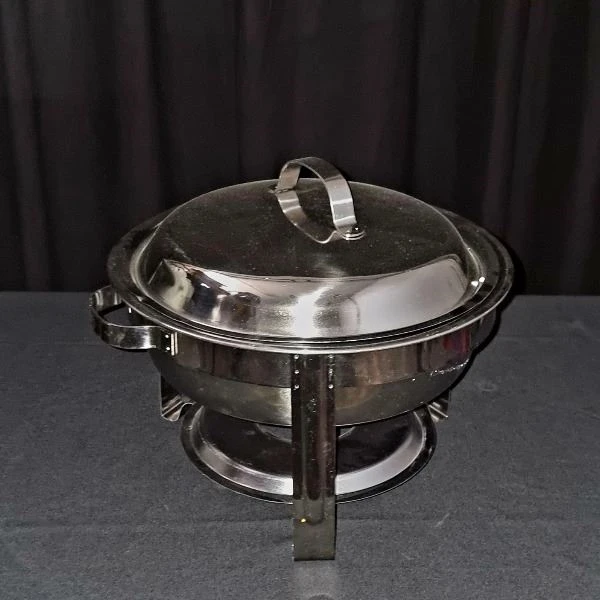 Maak kennis met onze elegante ronde chafing dish, inclusief 1 brandpasta. Ideaal voor het warm houden van voedsel op evenementen en feesten. Met zijn klassieke design voegt deze chafing dish een vleugje finesse toe aan elke gelegenheid. Een praktische en stijlvolle oplossing voor het serveren van warme gerechten, gegarandeerd om uw gasten te imponeren.