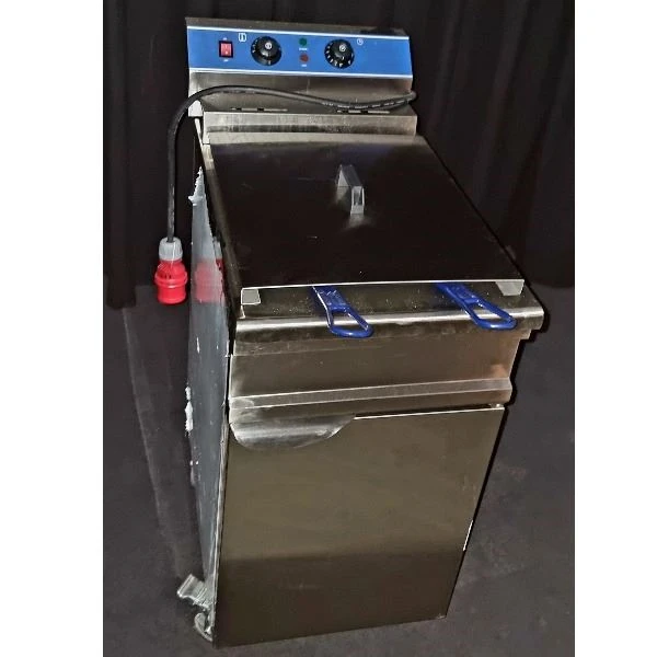 Onze mobiele frituur op krachtstroom biedt een krachtige oplossing voor het bereiden van heerlijke snacks op evenementen en feesten. Met een maximale capaciteit van 9 kW levert deze frituurpan snelheid en efficiëntie. Geniet van knapperige frietjes, smakelijke snacks en meer, allemaal bereid met gemak dankzij de krachtige krachtstroomaansluiting. Perfect voor drukke evenementen waar kwaliteit en snelheid essentieel zijn. 30 liter