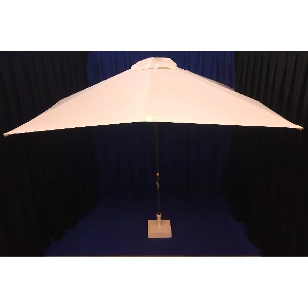 Maak kennis met onze prachtige witte vierkante parasol van 3 bij 3 meter, ideaal voor het creëren van schaduw op zonnige dagen. Deze stijlvolle toevoeging aan uw buitenruimte biedt niet alleen bescherming tegen de zon, maar voegt ook een vleugje elegantie toe aan uw evenement. Voor extra stabiliteit is een losse parasolvoet beschikbaar voor verhuur. Geniet van uw buitenruimte in stijl en comfort met onze hoogwaardige parasol en accessoires.