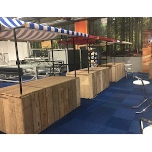 Ontdek onze sfeervolle steigerhouten partykraam, ideaal voor evenementen en markten. Met een breedte van 200 cm, diepte van 78 cm en hoogte van 100 cm biedt deze kraam voldoende ruimte voor presentaties en verkoop. Voeg een rustieke en charmante uitstraling toe aan uw evenement met deze partykraam.