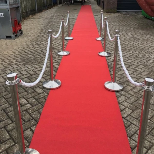 Maak een spectaculaire entree met onze rode loper, verkrijgbaar tegen een prijs per vierkante meter. Beschikbaar in breedtes van 1 of 2 meter, met aangepaste lengtes voor elke gelegenheid. Creëer een onvergetelijke en elegante ervaring voor uw evenement, van bruiloften tot premières.
