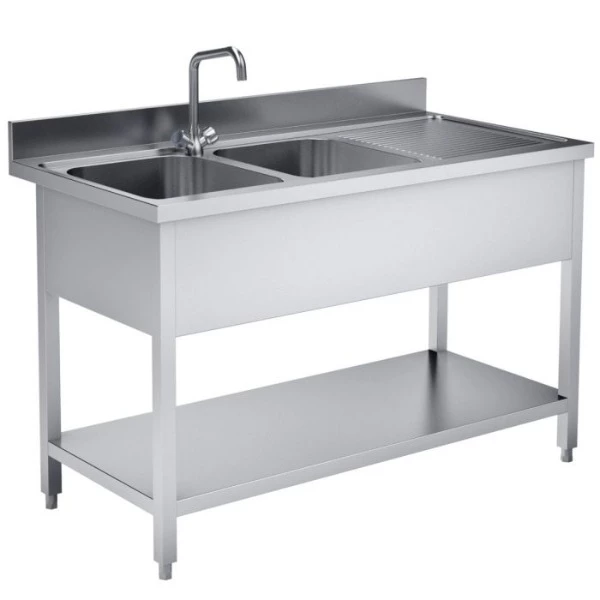 Ontdek onze functionele spoeltafel met roestvrijstalen constructie en 2 ruime bakken, ideaal voor professioneel gebruik. Deze tafel biedt voldoende ruimte voor het efficiënt schoonmaken van servies en keukengerei, waardoor het een essentiële toevoeging is aan elke keuken of cateringevenement.