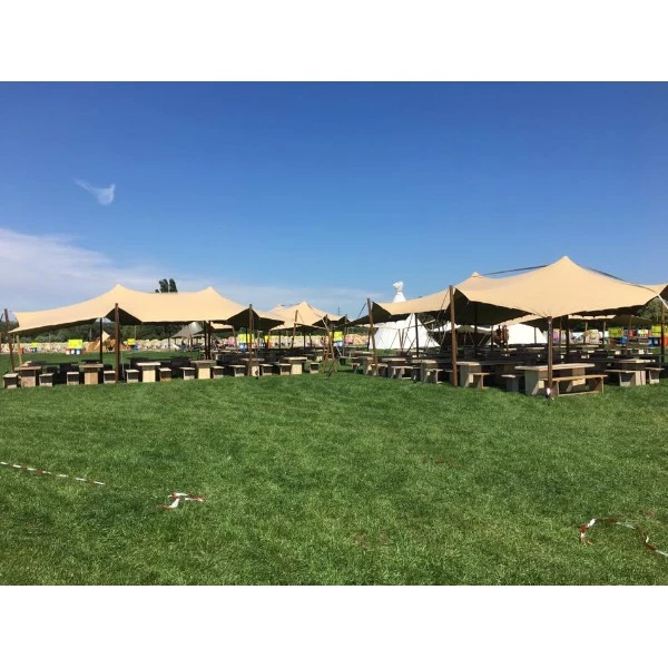 Klein formaat: Perfect voor intieme bijeenkomsten, deze tenten kunnen variëren van 6 bij 6 meter tot 10 bij 10 meter. Ideaal voor tuinfeesten, kleine bruiloften, of als lounges op festivals.