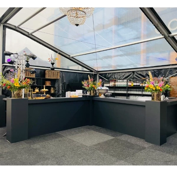 Ontdek onze verfijnde zwarte voorzetbar, beschikbaar om te huren voor uw volgende evenement. Met een strak en elegant ontwerp voegt deze bar een vleugje moderniteit toe aan elke setting. Met afmetingen van 2,20 meter lang, 105 centimeter hoog en 35 centimeter breed biedt deze compacte maar stijlvolle bar voldoende ruimte voor het serveren en presenteren van drankjes. Perfect voor bruiloften, feesten en andere bijzondere gelegenheden waar elegantie en functionaliteit hand in hand gaan.